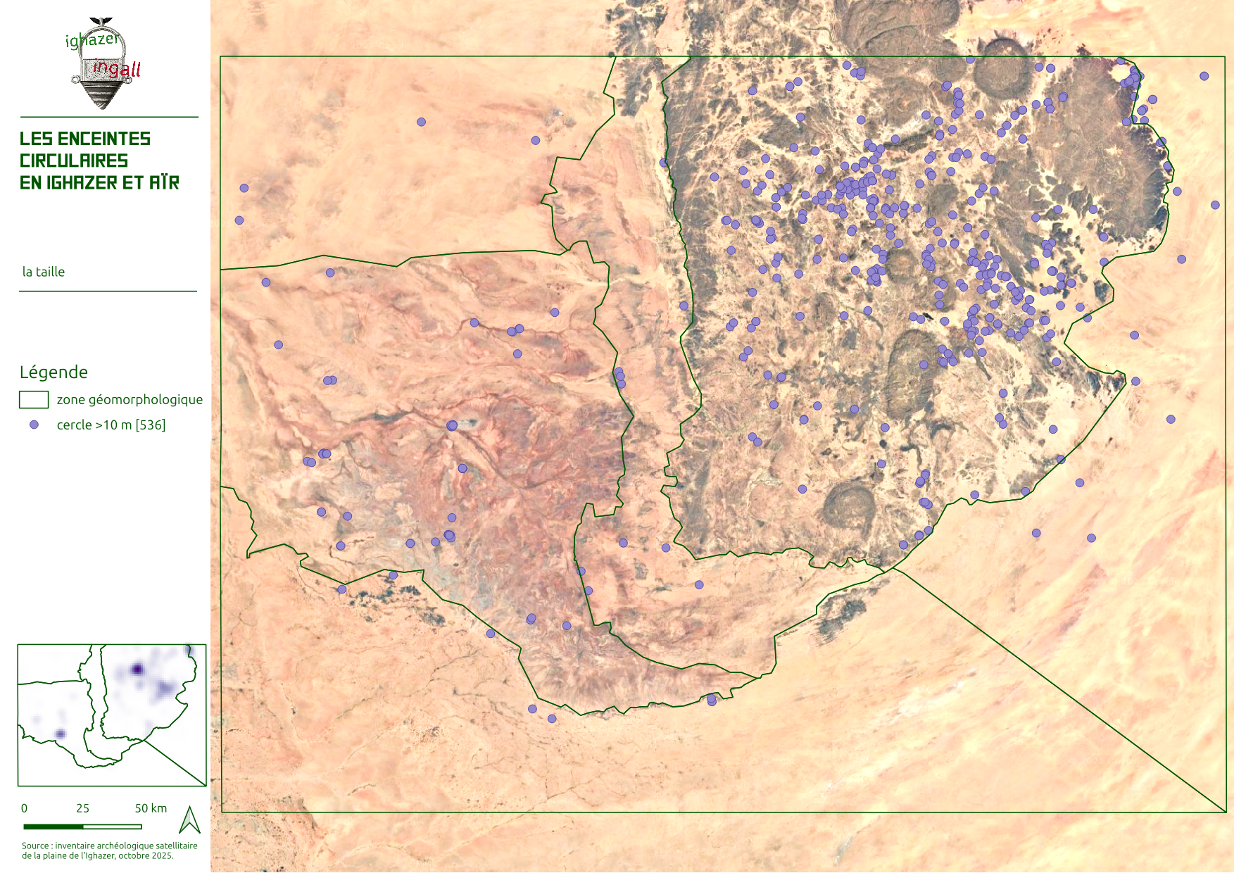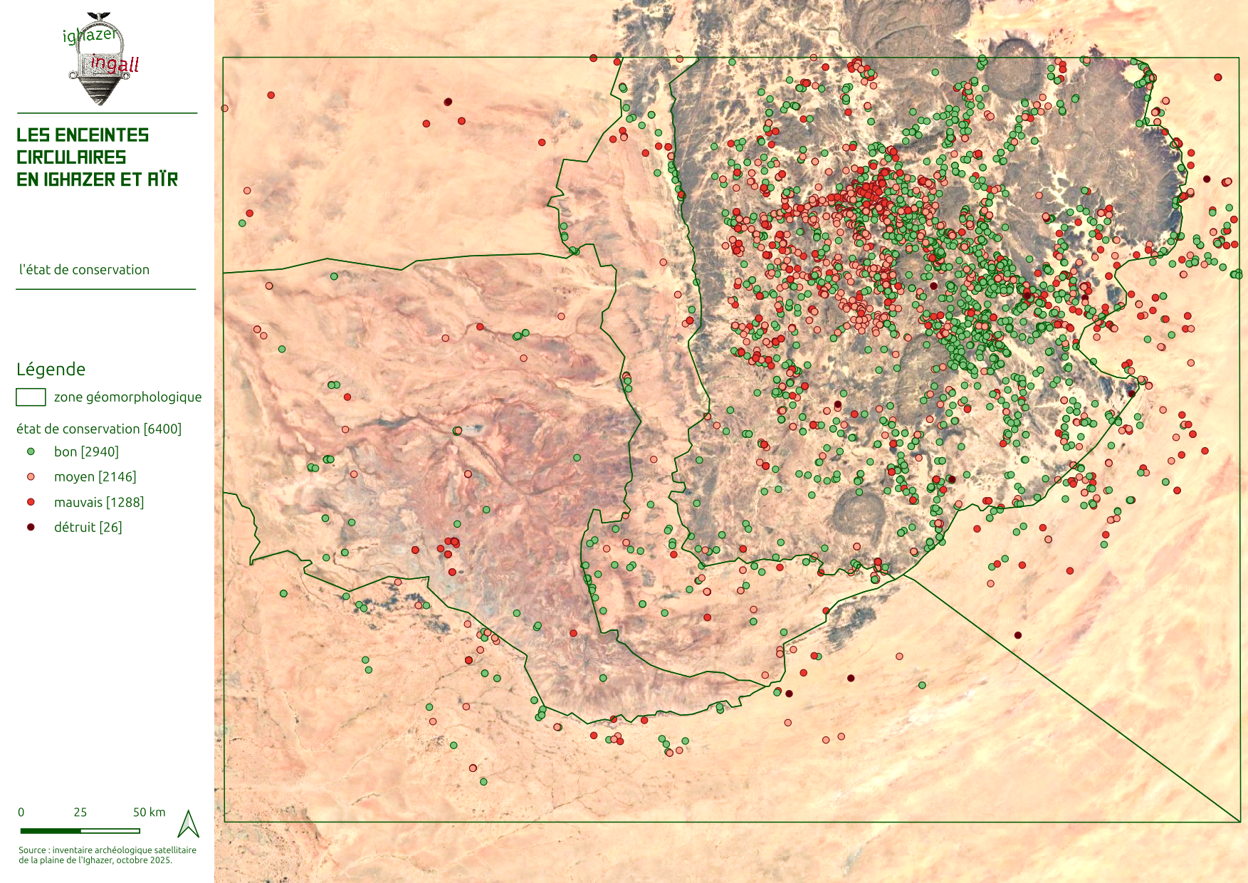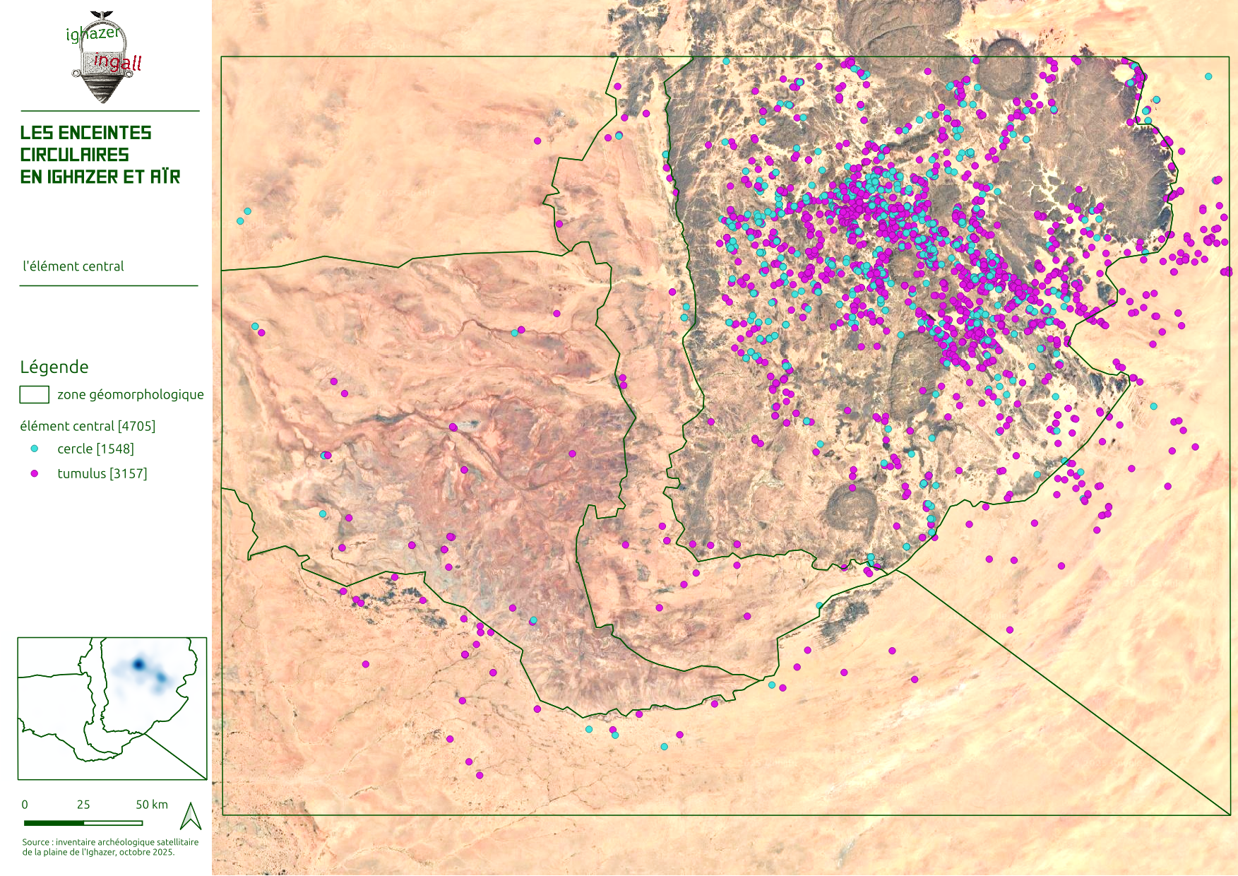 Une enceinte circulaire de pierre n’est pas obligatoirement un monument funéraire, il n’y a donc pas de doute à ce que cet inventaire contienne encore des enceintes de pierres qui correspondent à d’autres structures comme des restes de paillotes, de campement ou des enclos divers. Une enceinte circulaire de pierres sera donc le plus souvent dépourvue de matériel intérieur, sur l’image satellite la couleur de l’aire délimitée par le cercle est identique à celle extérieure à ce cercle, sinon ce sera une plateforme. De plus, l’enceinte circulaire funéraire sera le plus souvent continue, sans interruption qui pourrait marquer l’entrée d’un reste d’habitat. Cinq catalogues de monuments sont disponibles.