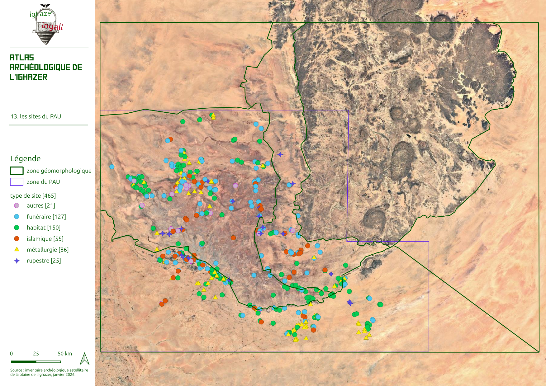 Pour l’essentiel, ces monuments se distribuent sur 6 millénaires, de la fin du 5è millénaire avant notre ère au 1er millénaire après, même si une petite partie de l’inventaire concerne des monuments de la période médiévale à notre histoire contemporaine dont les monuments quadrangulaires et les éléments d’habitat de type Assodé.