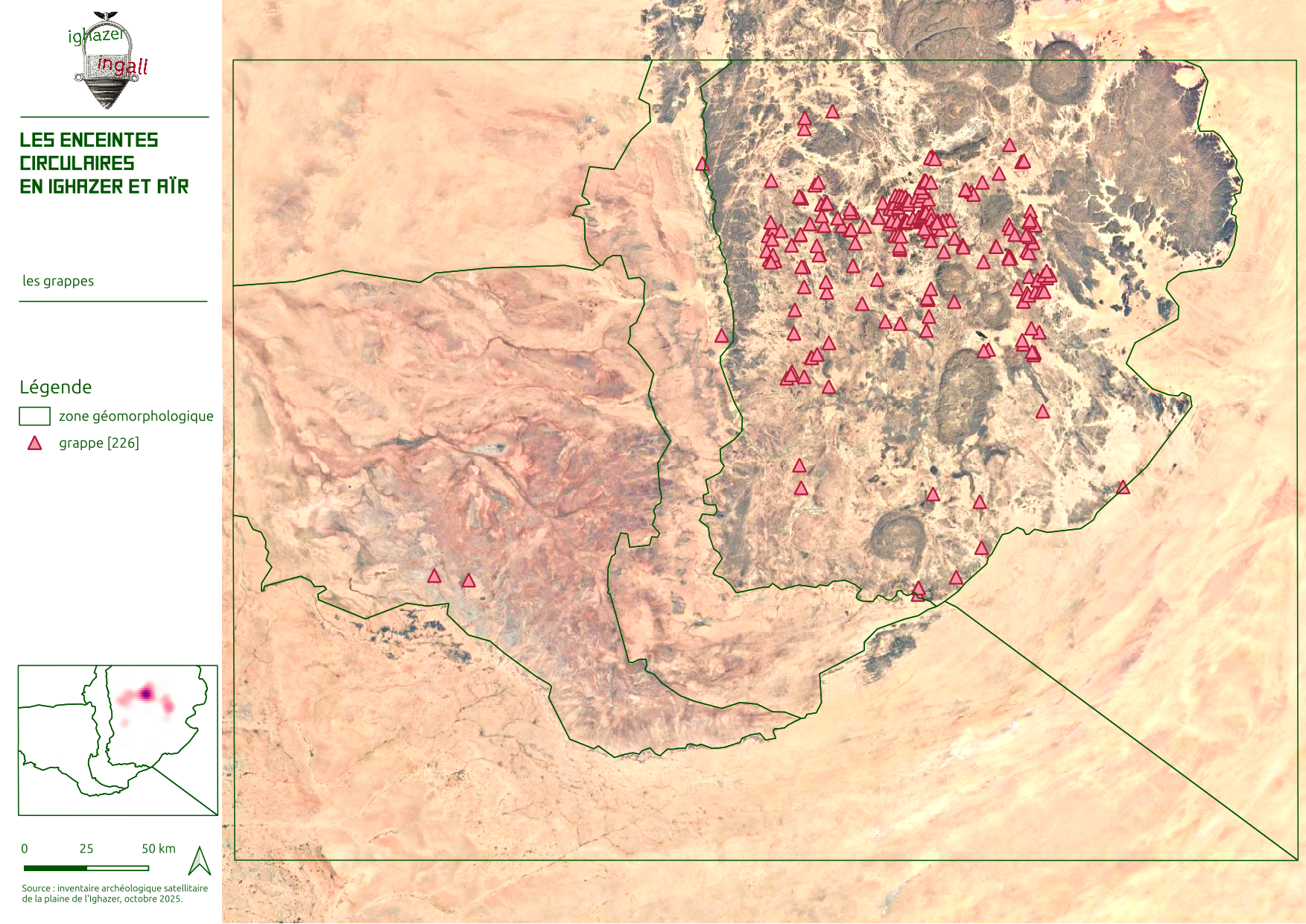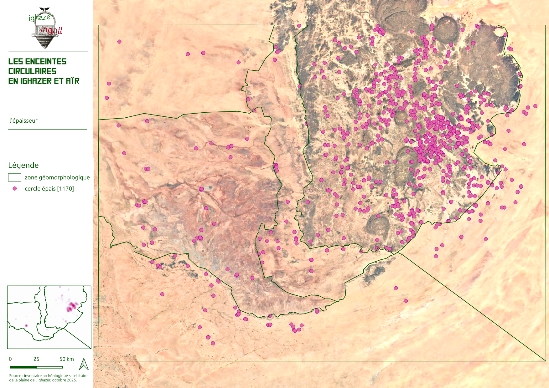 Une enceinte circulaire de pierre n’est pas obligatoirement un monument funéraire, il n’y a donc pas de doute à ce que cet inventaire contienne encore des enceintes de pierres qui correspondent à d’autres structures comme des restes de paillotes, de campement ou des enclos divers. Une enceinte circulaire de pierres sera donc le plus souvent dépourvue de matériel intérieur, sur l’image satellite la couleur de l’aire délimitée par le cercle est identique à celle extérieure à ce cercle, sinon ce sera une plateforme. De plus, l’enceinte circulaire funéraire sera le plus souvent continue, sans interruption qui pourrait marquer l’entrée d’un reste d’habitat. Cinq catalogues de monuments sont disponibles.