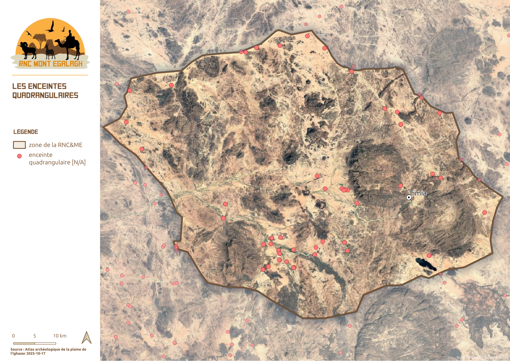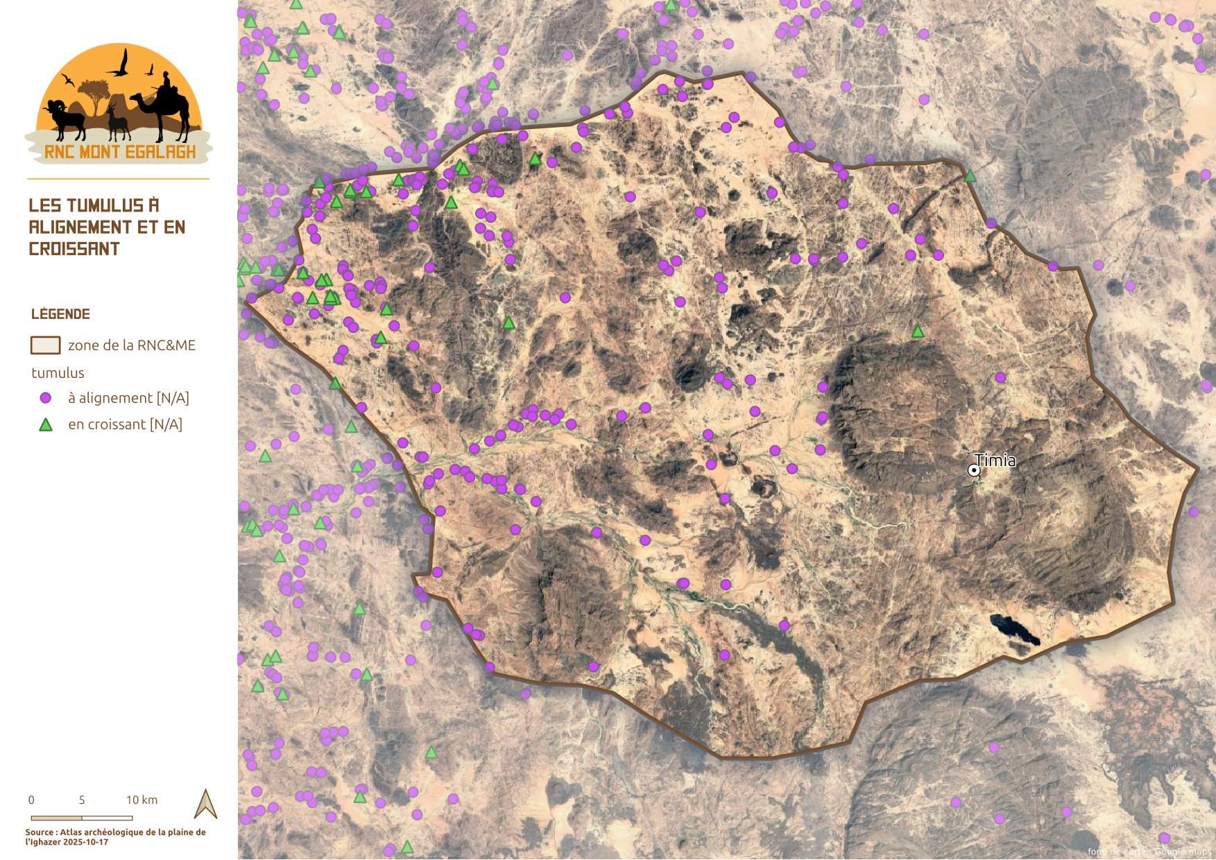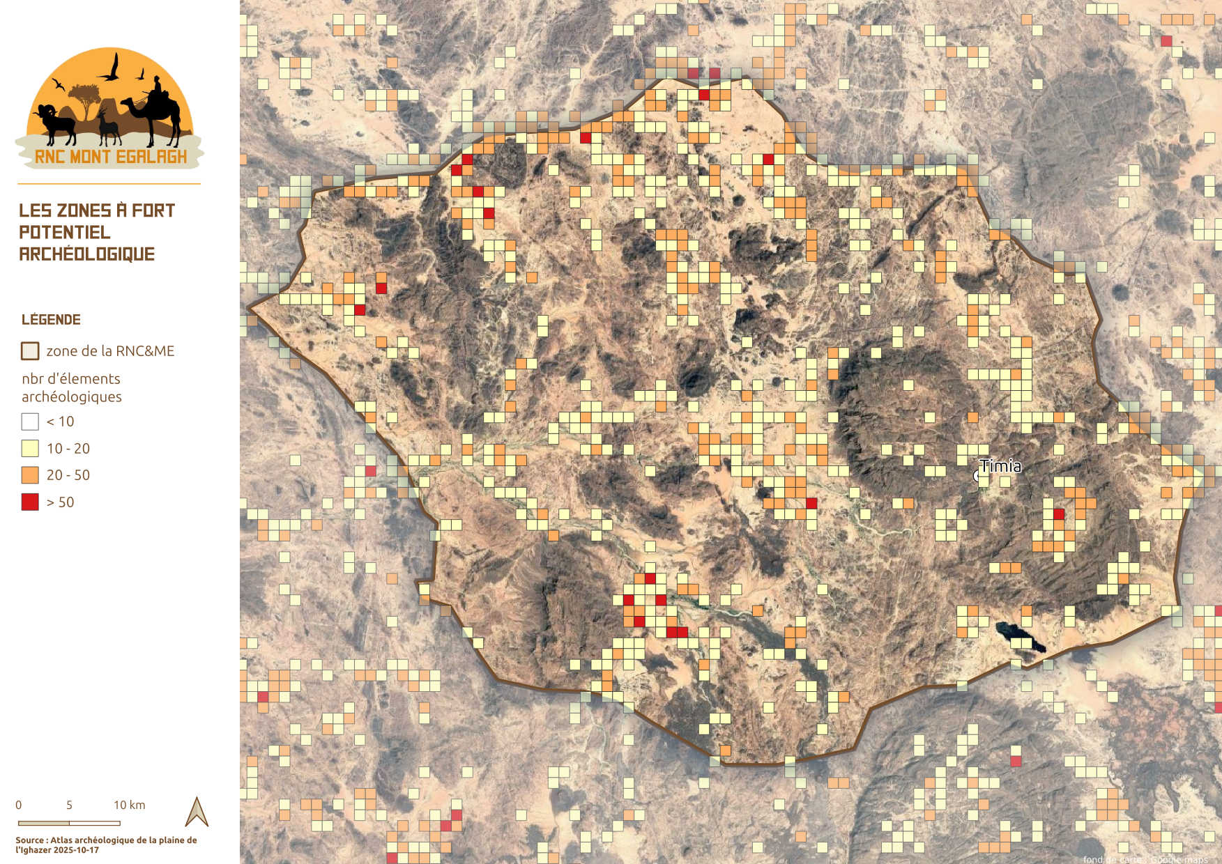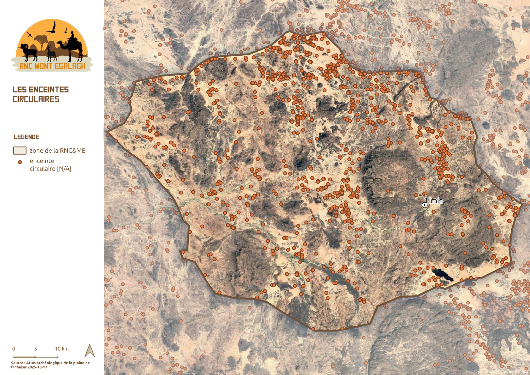 La Réserve Naturelle Communale du Mont Egalagh représente un cadre réglementaire et administratif parfaitement adapté à la préservation du patrimoine culturel et archéologique de l’Aïr. Elle constitue une entité homogène au cœur du massif, abritant l’essentiel des éléments préhistoriques et historiques encore trop peu explorés dans cette région. Cette réserve pourrait ainsi devenir un socle pour des programmes de recherche préhistorique et historique, visant à approfondir l’étude de vestiges archéologiques encore largement méconnus. Ce document en est une des premières pierre.