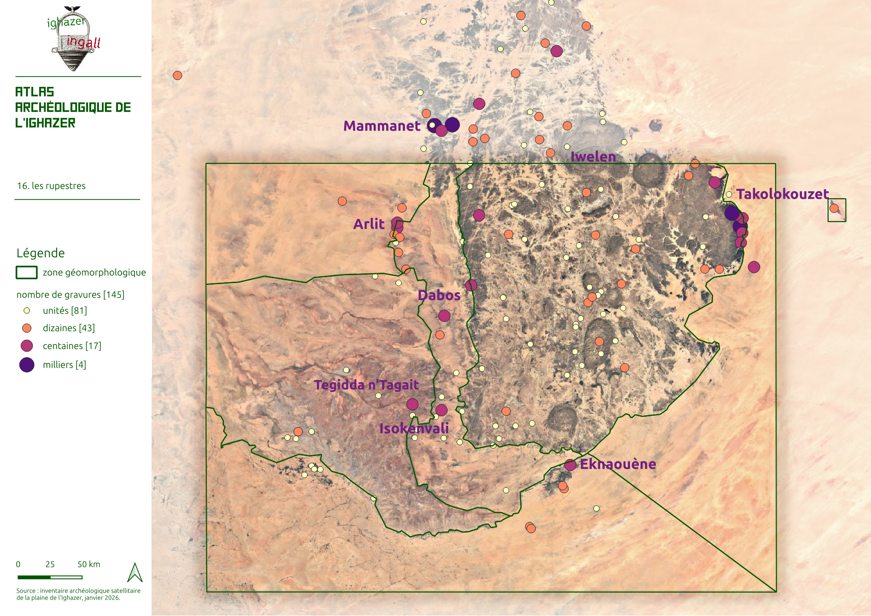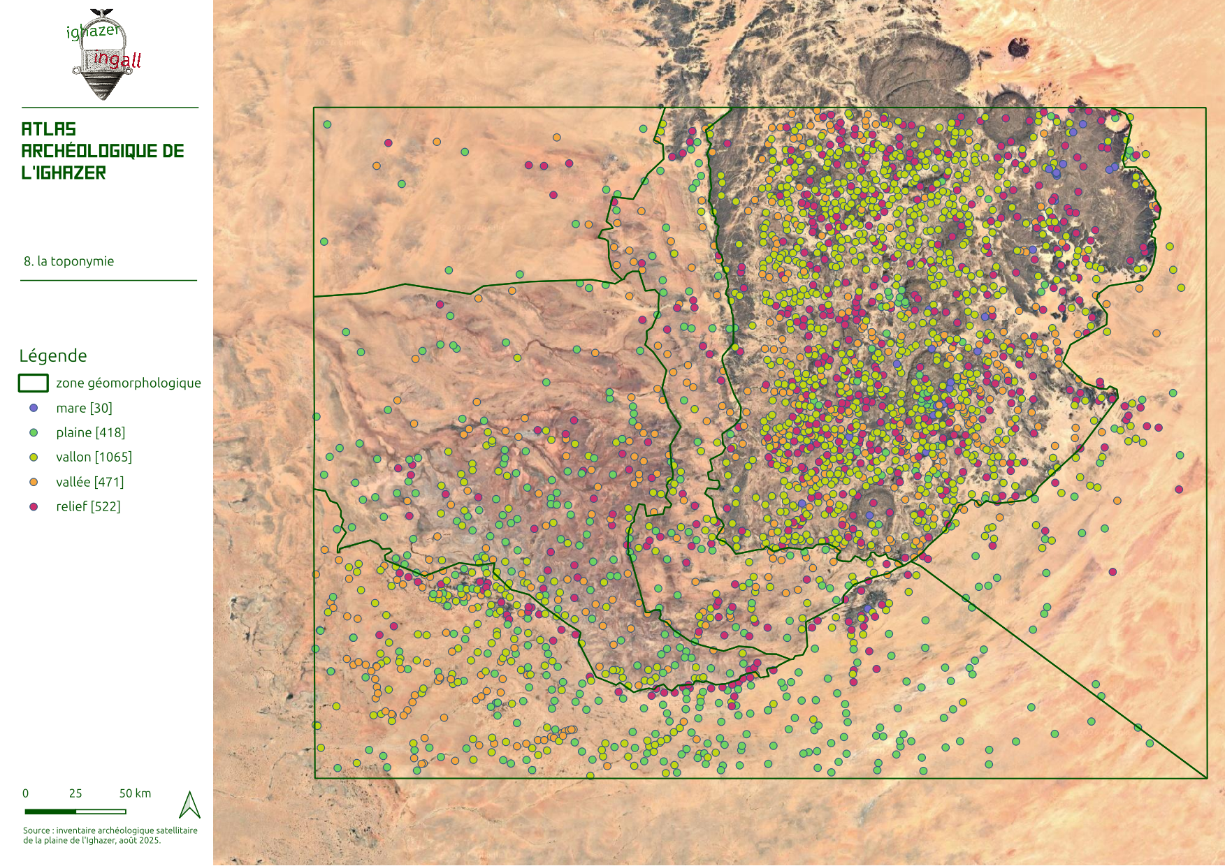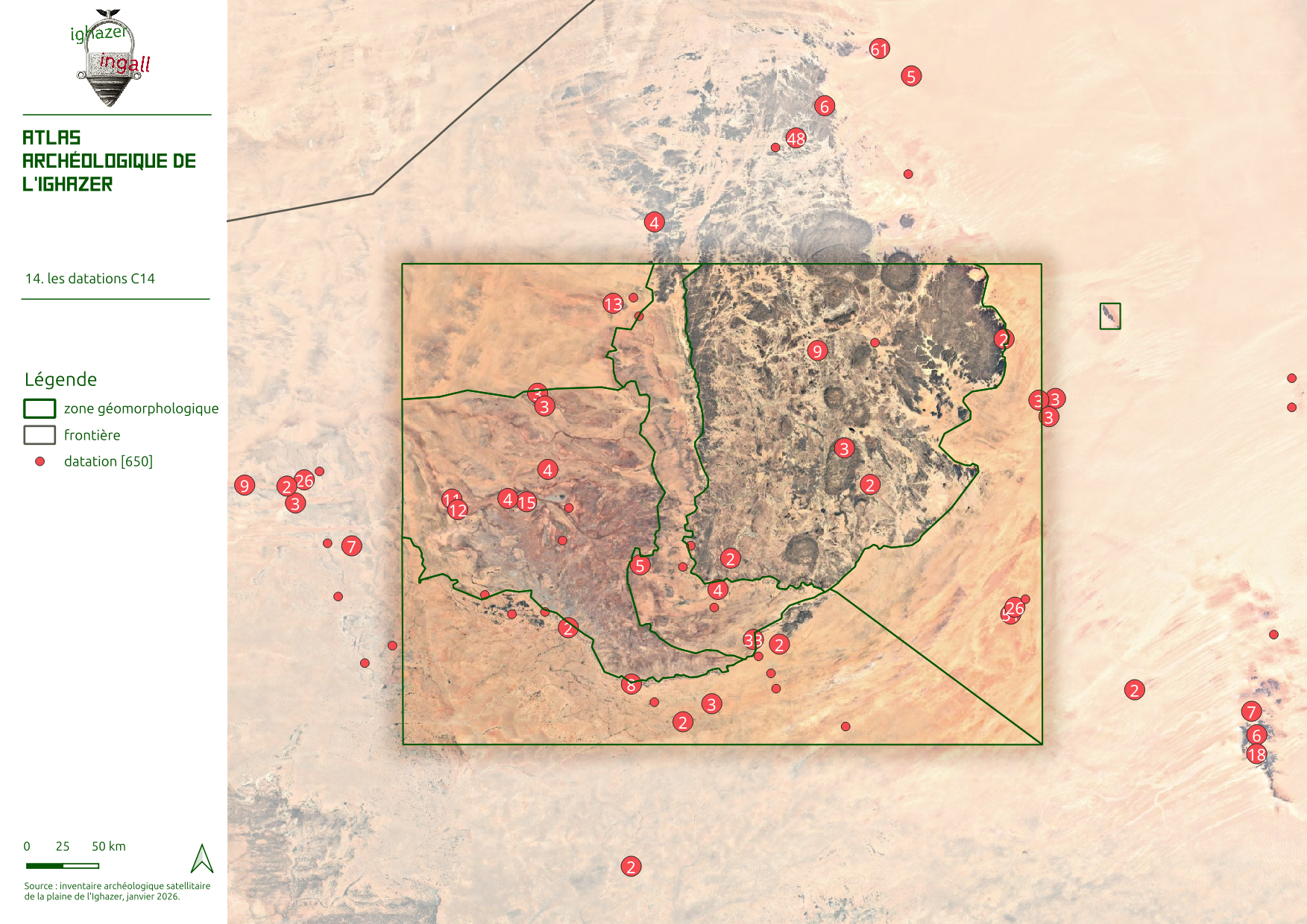 Pour l’essentiel, ces monuments se distribuent sur 6 millénaires, de la fin du 5è millénaire avant notre ère au 1er millénaire après, même si une petite partie de l’inventaire concerne des monuments de la période médiévale à notre histoire contemporaine dont les monuments quadrangulaires et les éléments d’habitat de type Assodé.